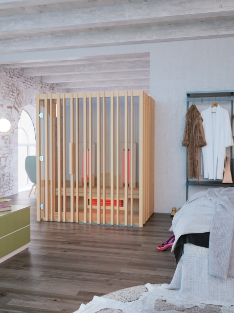 A spectacular sauna with bold looks where your body is warmed by infrared technology and your eyes are pampered by the contemporary design.
